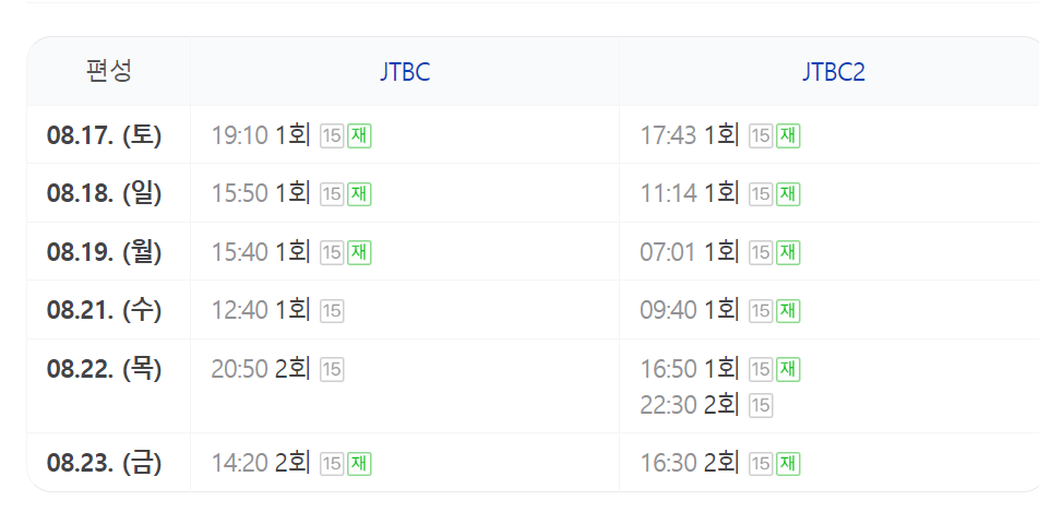 끝사랑은 JTBC에서 매주 목요일 저녁 8시 50분에 방송됩니다. 첫 방송을 놓치셨다면, JTBC의 공식 홈페이지와 OTT 서비스에서 다시보기 기능을 통해 감상하실 수 있습니다. 재방송은 주말 오전 시간대에 방영되니, 자세한 일정은 JTBC 편성표를 확인하시기 바랍니다.